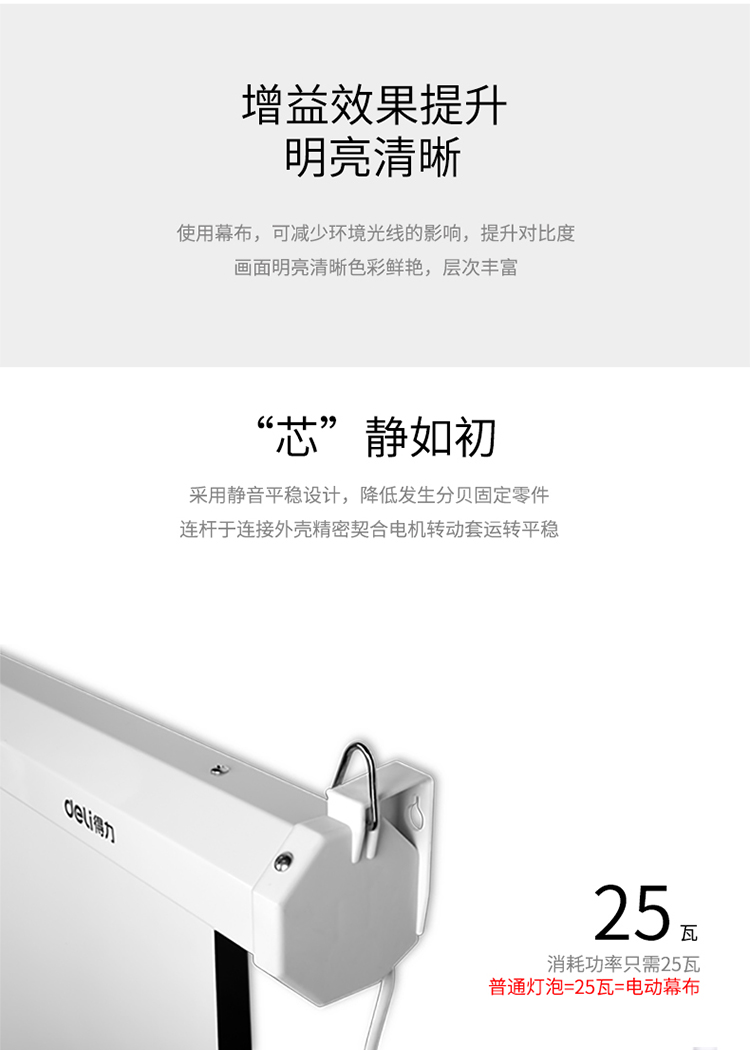 商品名称:得力(deli)100英寸 4:3电动调节投影幕布投影布家用投影仪幕布50