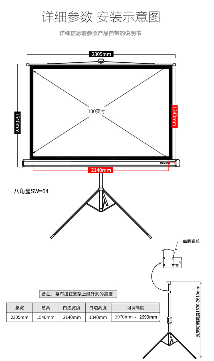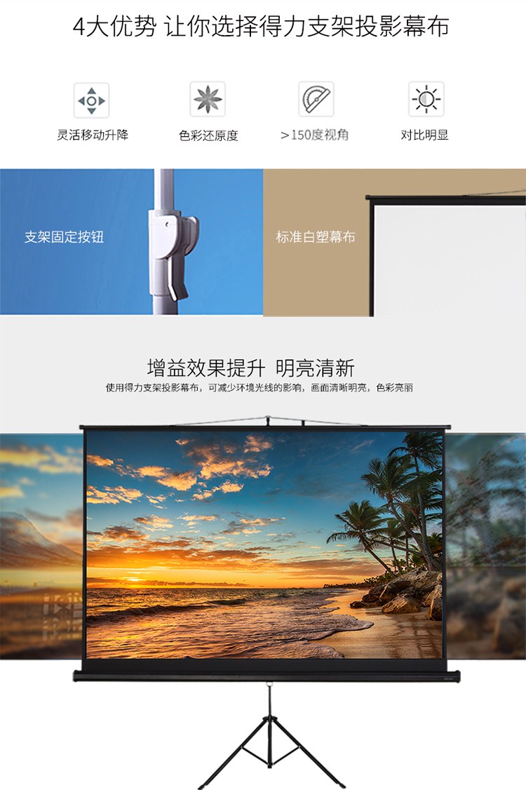 商品名称:得力(deli)100英寸 16:10支架投影幕布投影布家用投影仪幕布5049