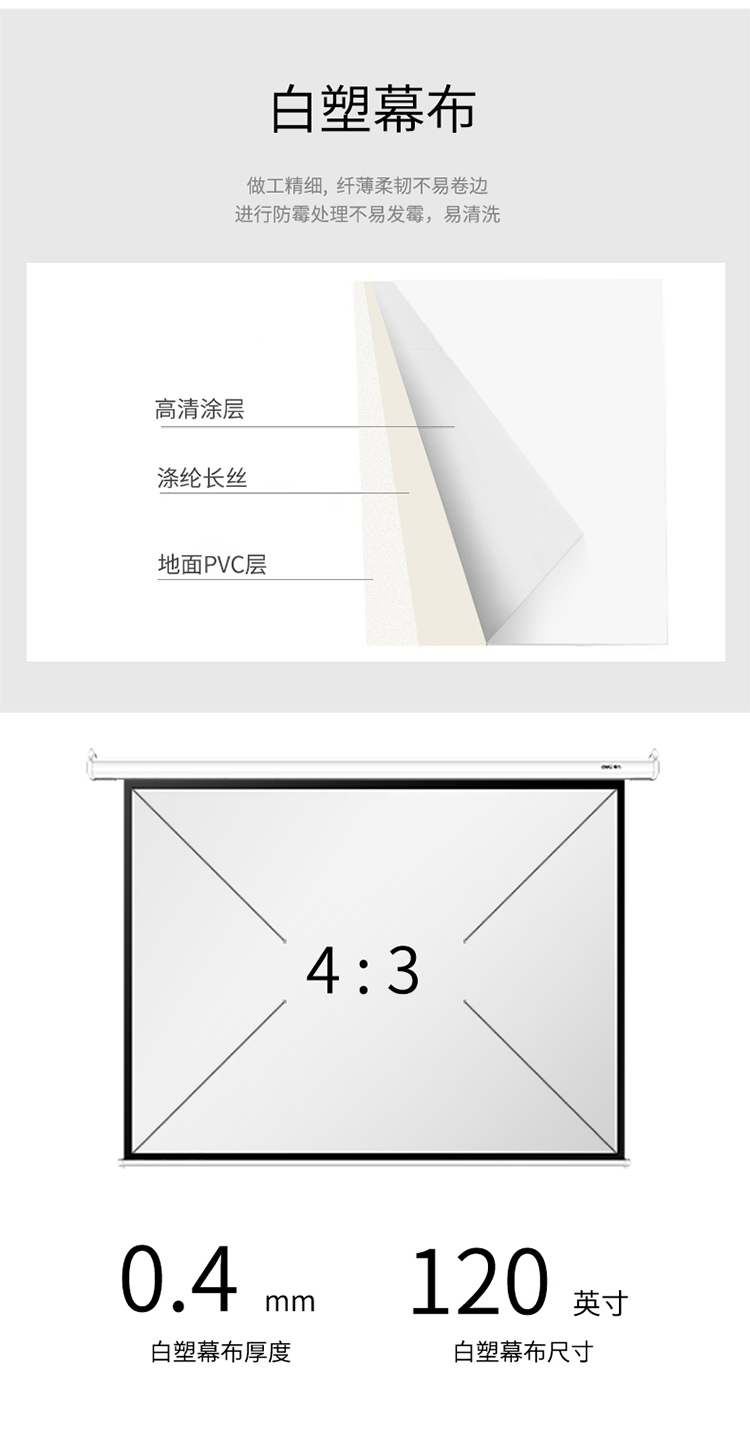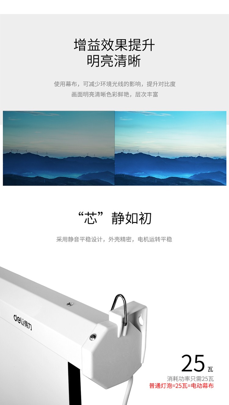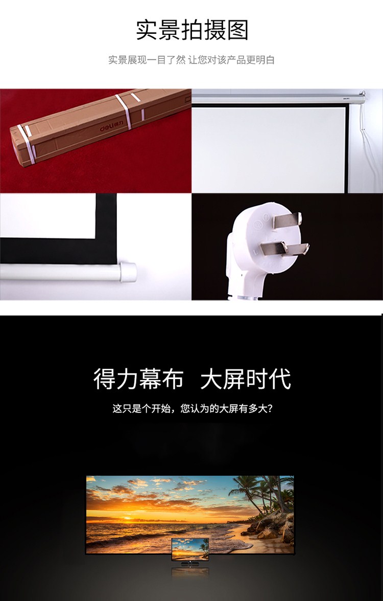 商品名称:得力(deli)120英寸 4:3遥控电动投影幕布投影布(标配遥控器)家用