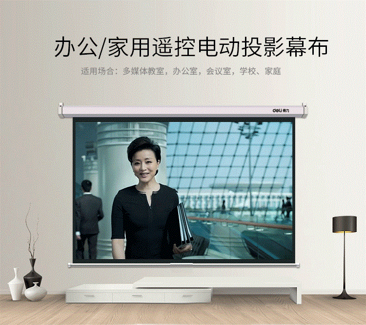 得力(deli)100英寸 4:3遥控电动投影幕布投影布(标配遥控器)家用
