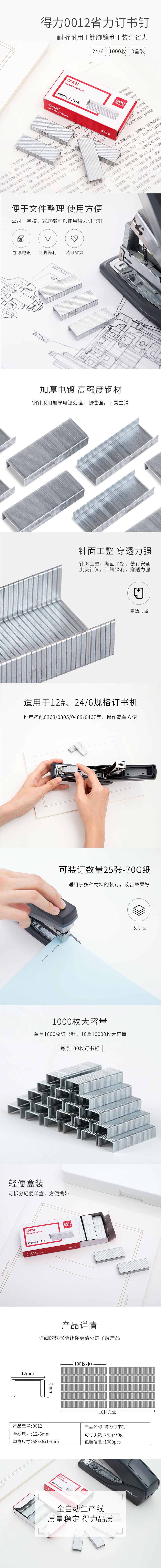 得力0011不锈钢订书钉12#统一小号订书钉省力不锈钢针