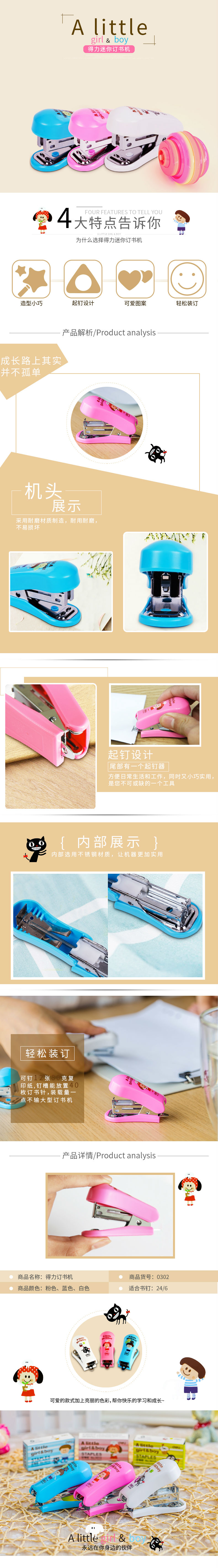 商品名称:得力0302迷你型卡通小订书机器装订机可爱小巧便携