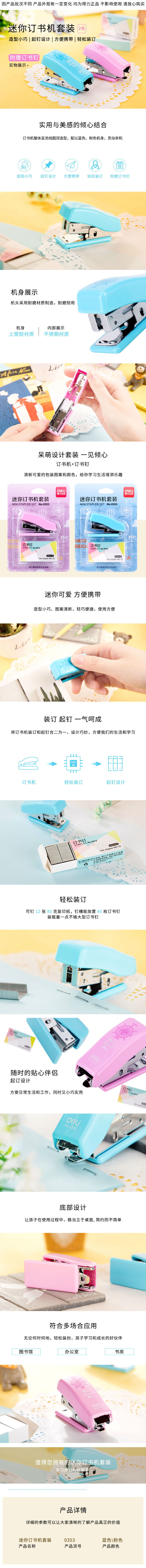 商品名称:得力文具订书机0353套装可爱彩色卡通迷你小型袖珍小学生订书器