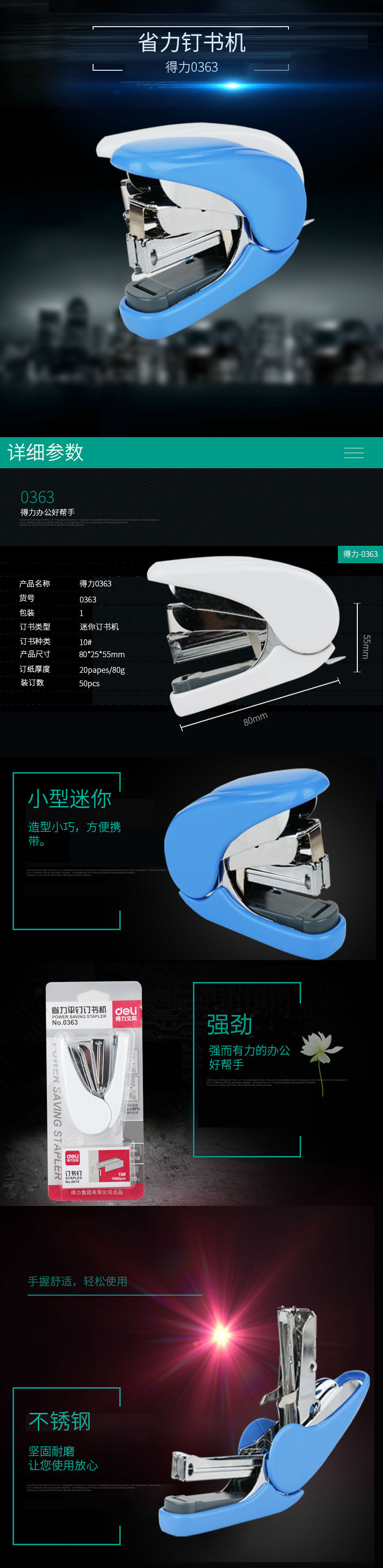 得力0301订书机12号省力订书器单指轻松装订20张重型加厚办