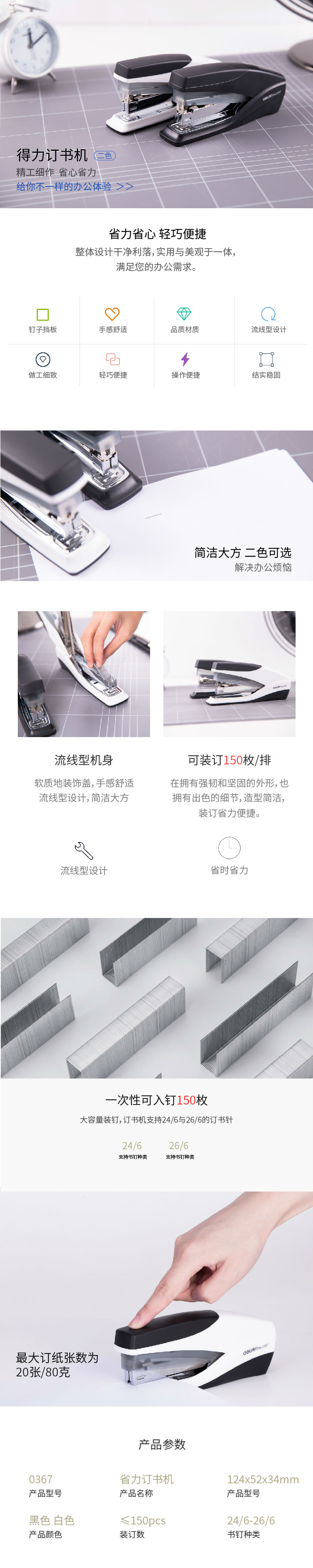 商品名称:得力0367省力订书机钉书机订书器装订机装订可订20页文具办公用品