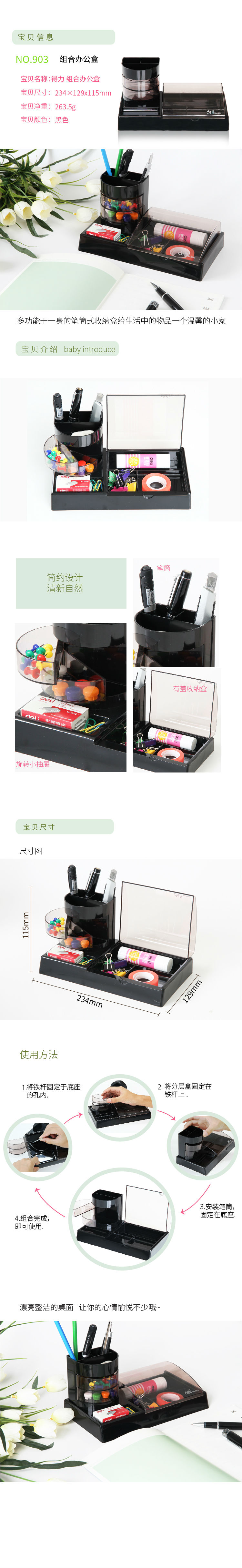 商品名称:得力903创意多功能笔筒 实用型组合办公盒 高档黑色收纳笔筒笔座