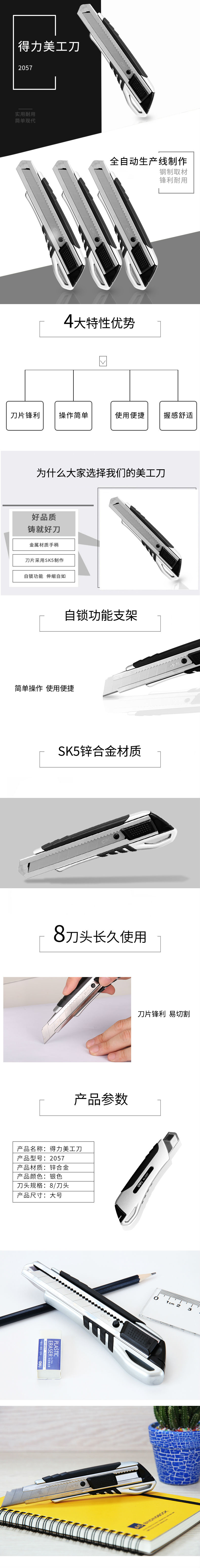 商品名称:得力2057大号美工刀锌合金加厚加重型金属刀壳裁纸壁纸刀