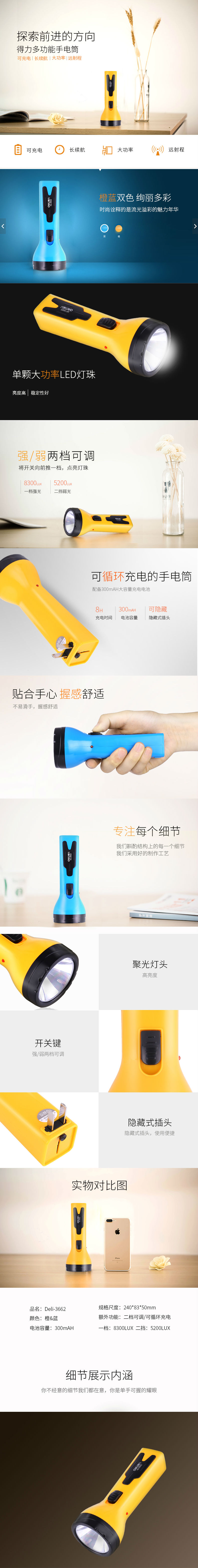 商品名称:得力3662LED充电式手电筒循环充电强光户外迷你便携