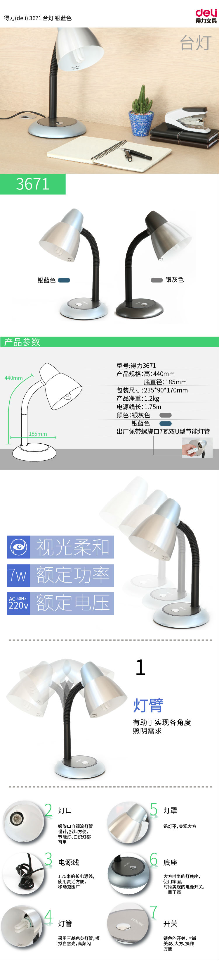 得力文具3673学生办公书桌卧室阅读学习写字护眼台灯节能灯保势力