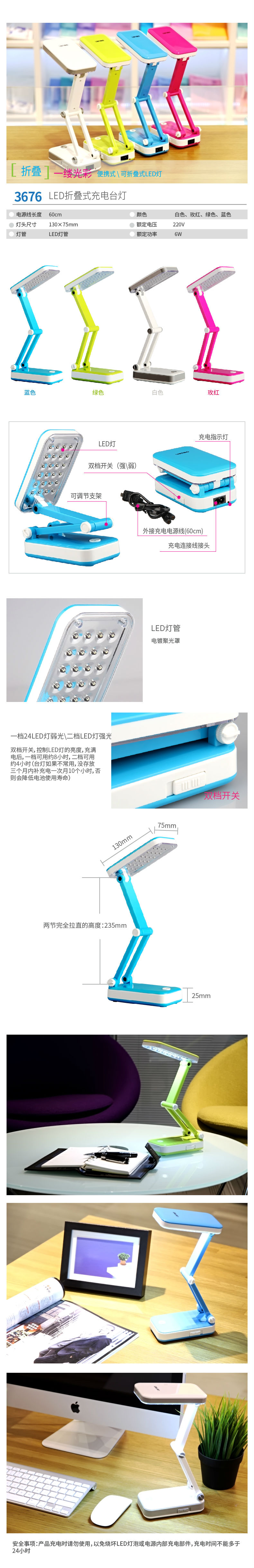 商品名称:得力3676台灯LED节能护眼折叠式台灯学生阅读学习可充电多灯头