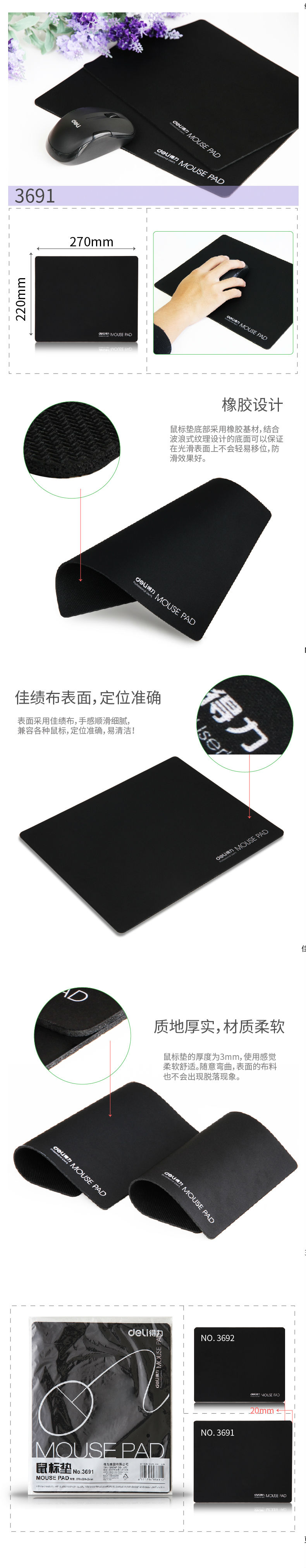 得力3692黑色加厚鼠标垫布垫橡胶材质定位准确防滑商务鼠标垫