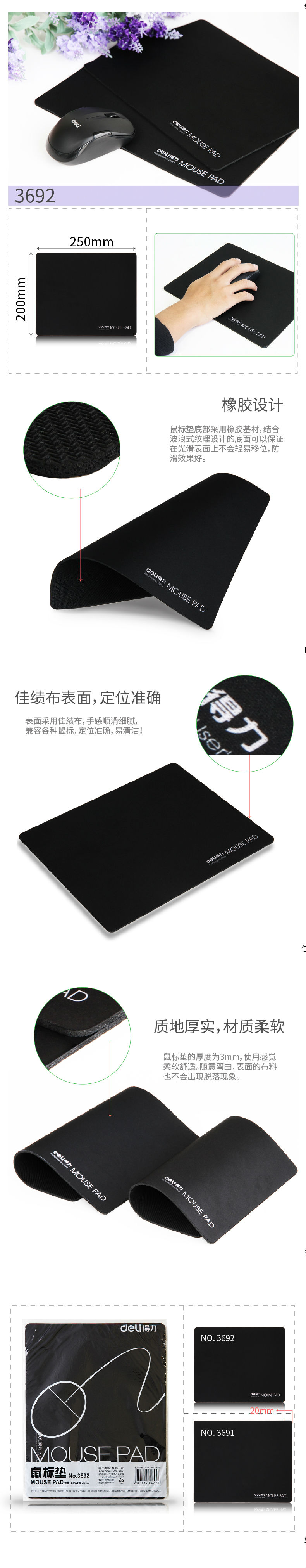 商品名称:得力3692黑色加厚鼠标垫布垫橡胶材质定位准确防滑商务鼠标垫