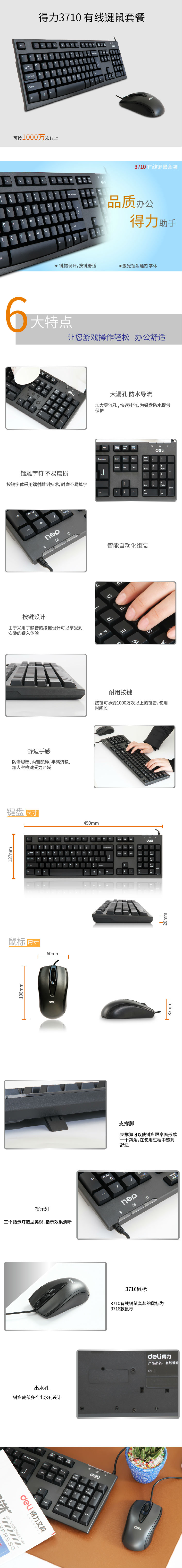 商品名称:得力3710有限键鼠套装高精度光学家用办公笔记本有线usb鼠标