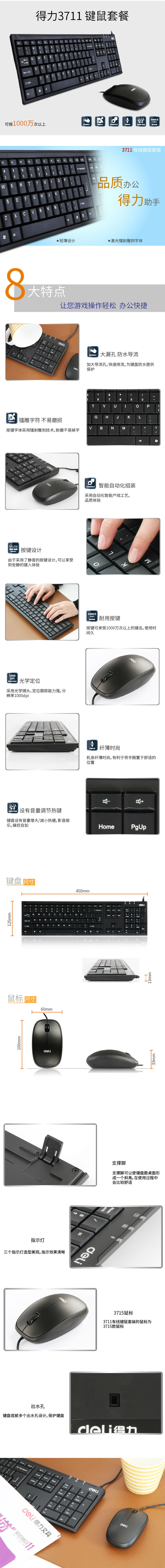 得力3710有限键鼠套装高精度光学家用办公笔记本有线usb鼠标