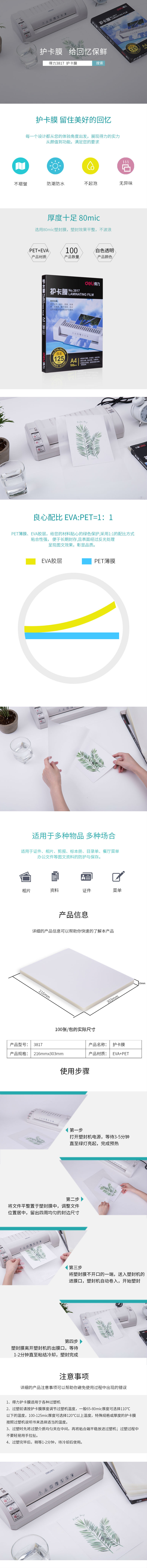 商品名称:得力3817快速粘合护卡膜相片纸A4过塑膜塑封纸覆膜机膜防水100张