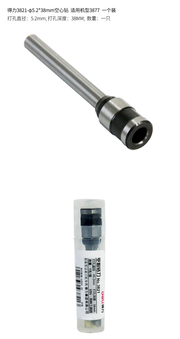 商品名称:得力3821装订机空心钻刀 3877凭证装订机配件3885钻头钻刀头钻针