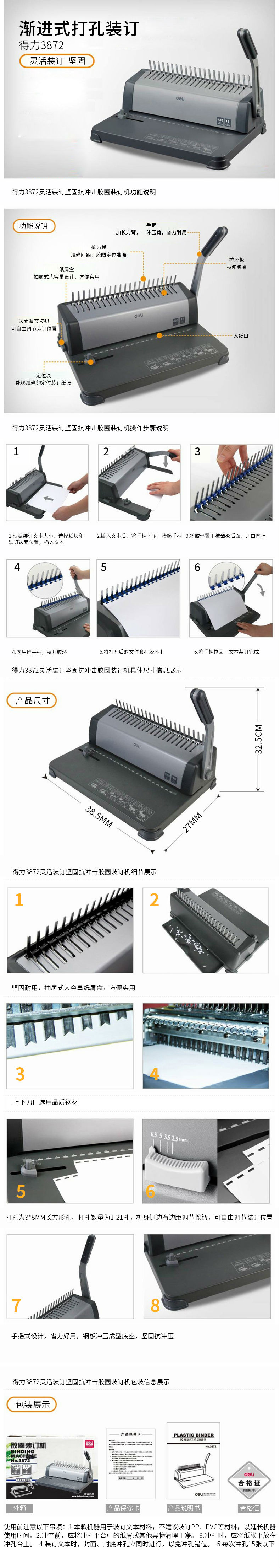商品名称:得力梳式装订机3872胶圈发夹两用一体装订机21孔手动文件打孔器
