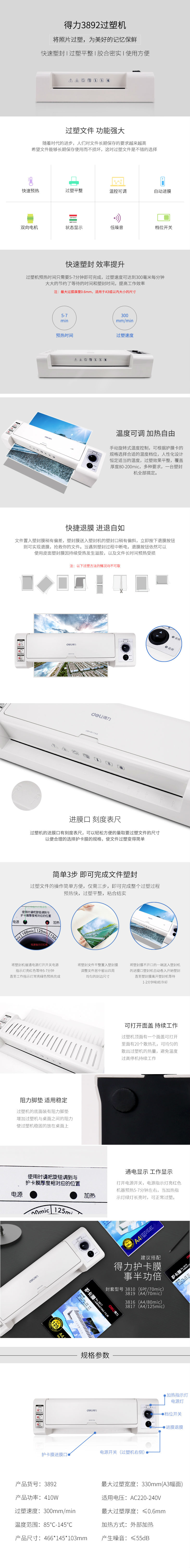 商品名称:得力A3A照片塑封机3892过塑机A4相片家用过胶机冷裱热塑