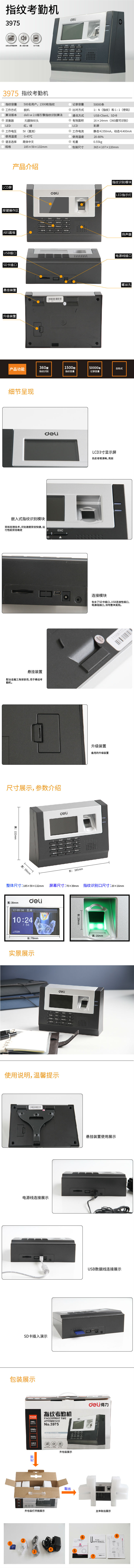 商品名称:得力3975考勤机打卡指纹考勤机签到指纹式一体指纹打卡器