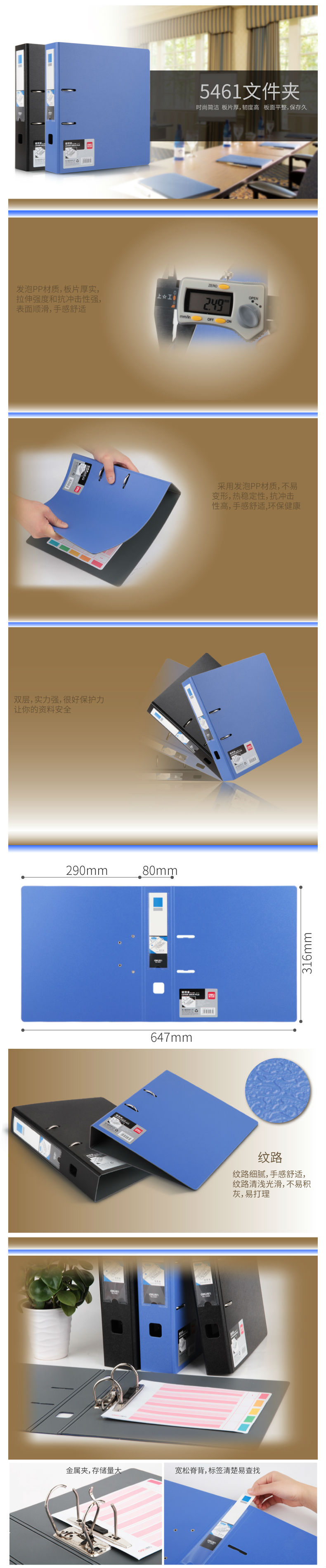 商品名称:得力5461_3寸快劳夹试卷夹插页袋档案册办公学生多页单册