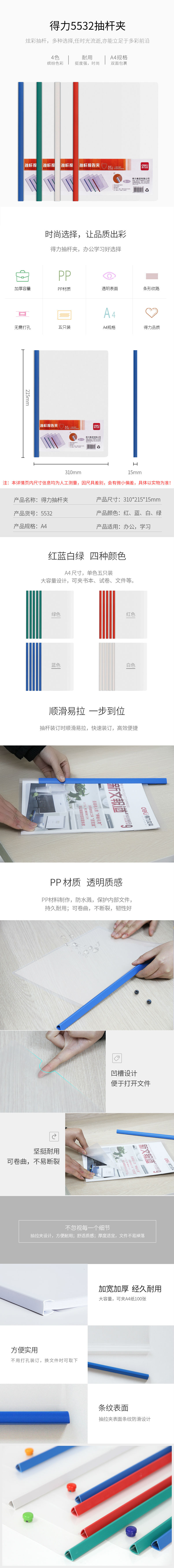 商品名称:得力5532A4抽杆文件夹背宽15MM三角杆抽杆夹加厚