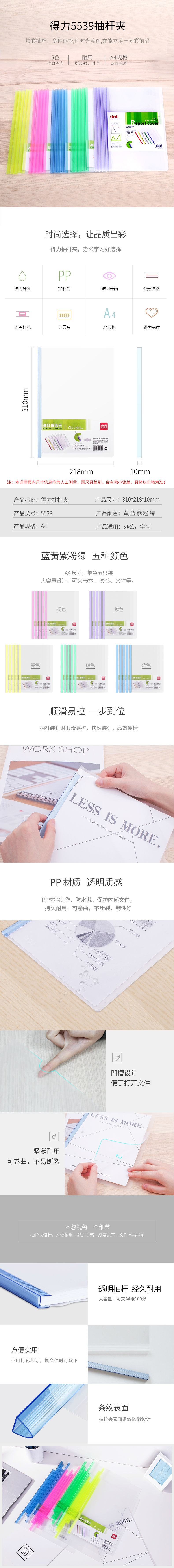 商品名称:得力5539抽杆夹文件夹A4透明拉杆夹报告夹资料夹试卷夹