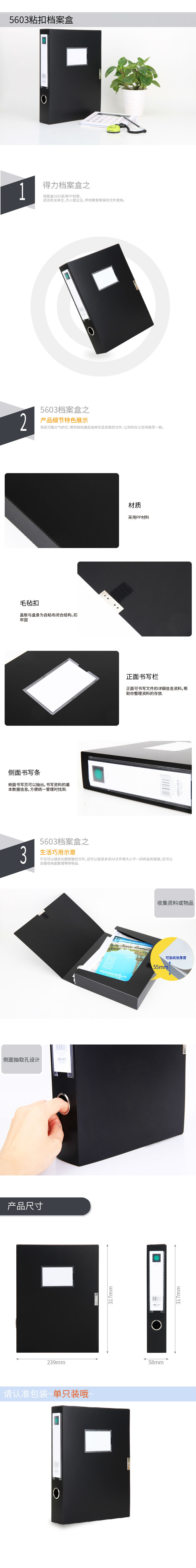 得力档案盒5603 A4好质量3寸文件盒 粘扣资料盒 塑料收纳盒 办公