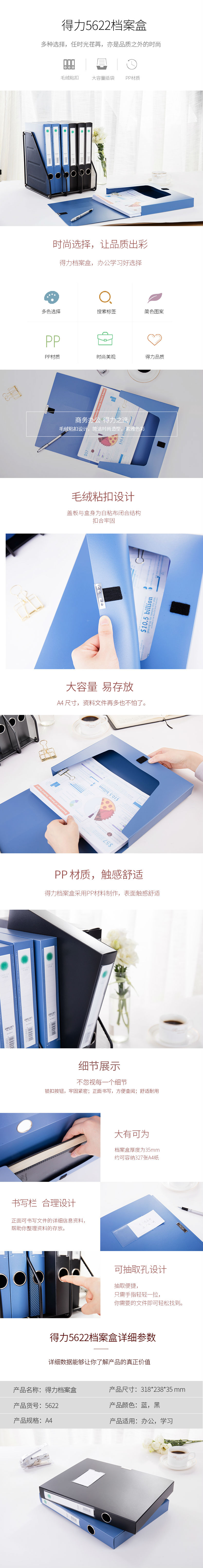 商品名称:得力A4档案盒文件盒资料盒35MM50mm粘扣档案收纳盒5622