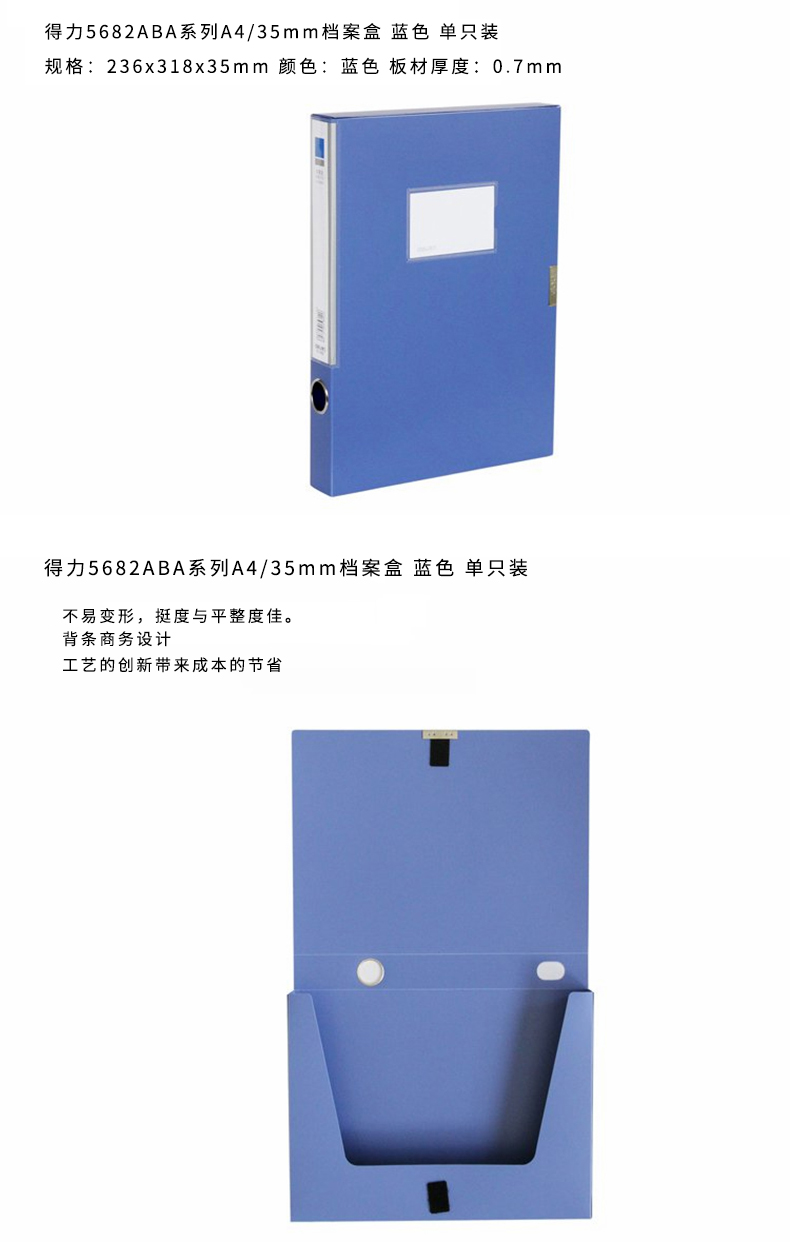 商品名称:得力5682档案盒A4档案盒塑料收纳文件盒a4资料盒55mm大号