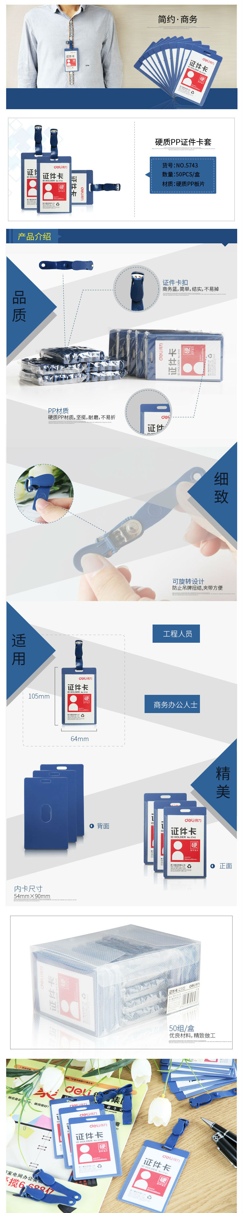 商品名称:得力证件卡套 工作证卡竖式胸卡工作牌 展会贵宾卡带夹子5743