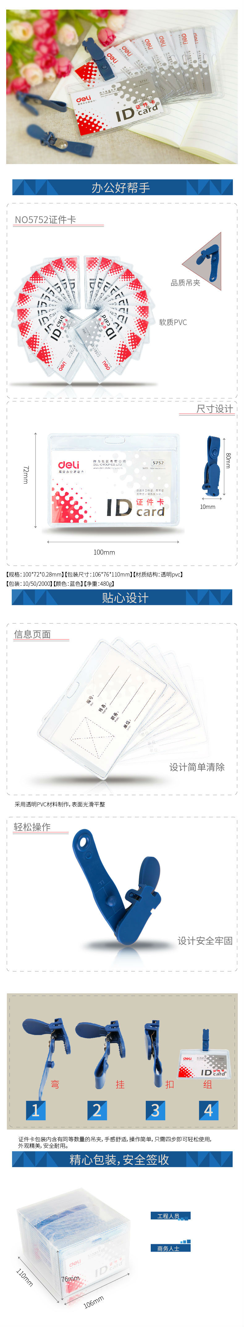 得力5752证件卡(蓝)(50只/盒)