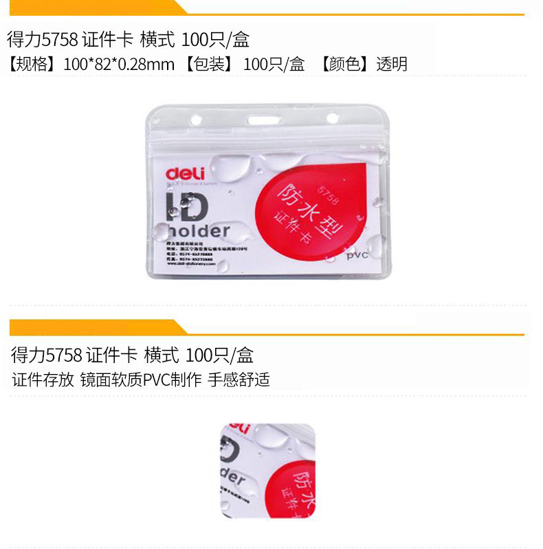 得力防水型证件卡5758证件收纳卡工作证卡透明塑料卡套证件保护套
