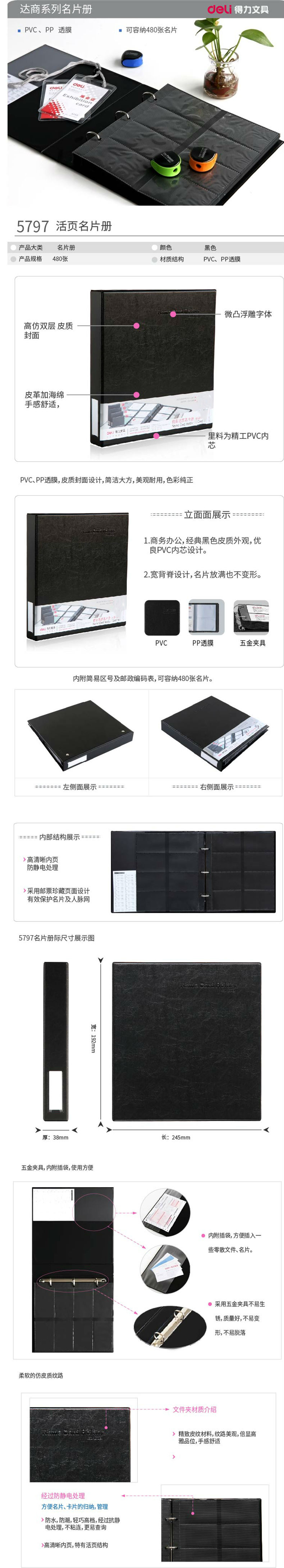 商品名称:得力deli 5797 商务型皮面活页名片册 480张 大容量 名片本名片薄