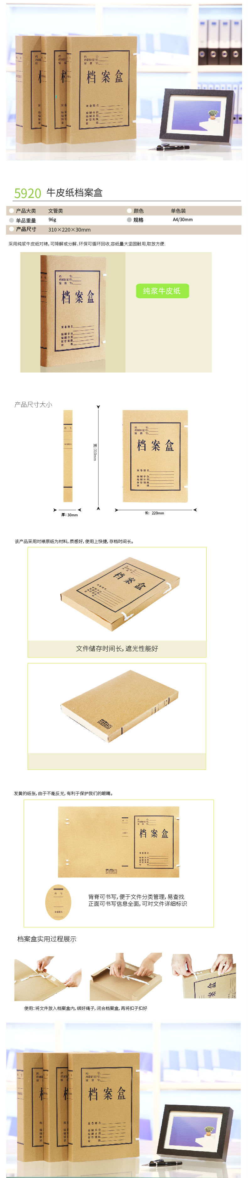 商品名称:得力5920牛皮纸档案盒3cm背宽纸质加厚牛皮档案盒 A4收纳盒