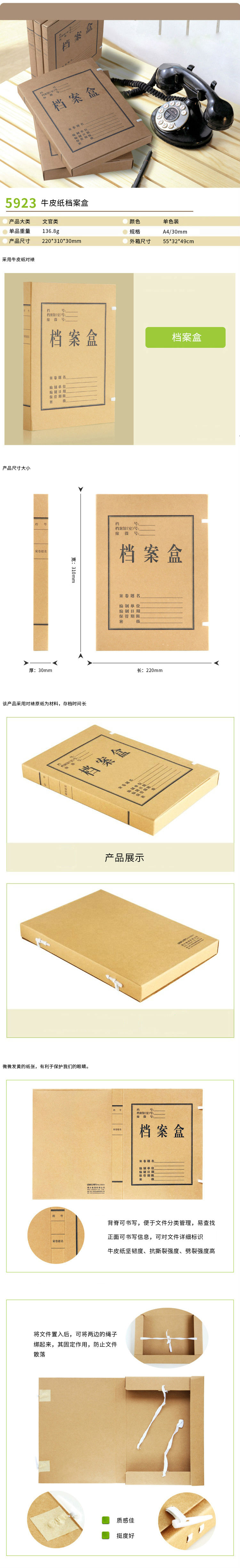 商品名称:得力5923 牛皮纸档案盒 3CM档案盒 收纳资料盒 背宽3公分A4文件盒
