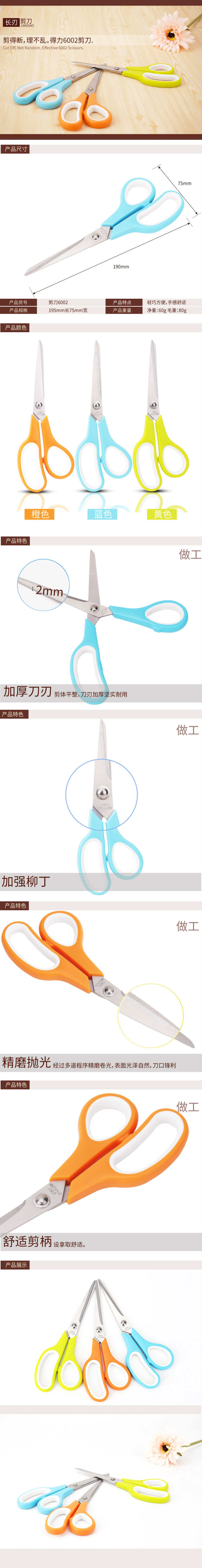 商品名称:得力6002大号剪刀家用多功能办公室裁缝手工成人剪刀硅胶护套舒适