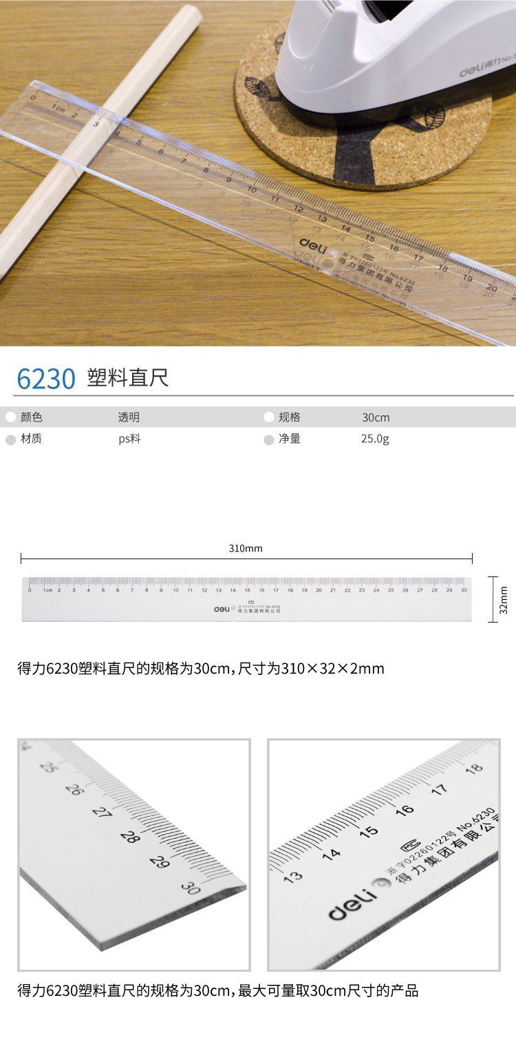 得力6435三角尺30-cm三角尺 得力仪尺多功能办公用品三角 塑料厘