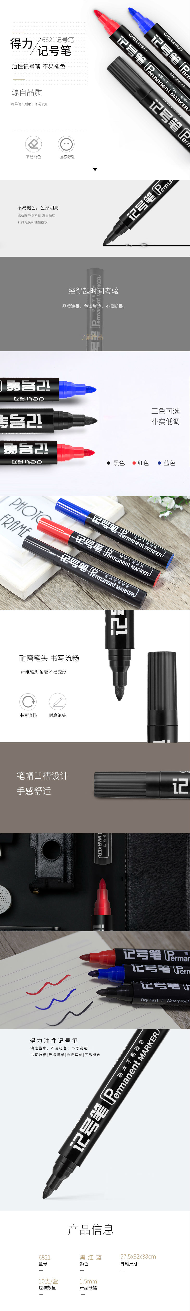 商品名称:得力记号笔6821快递笔大头笔勾线笔光盘笔瞬干不易褪色记号笔箱头