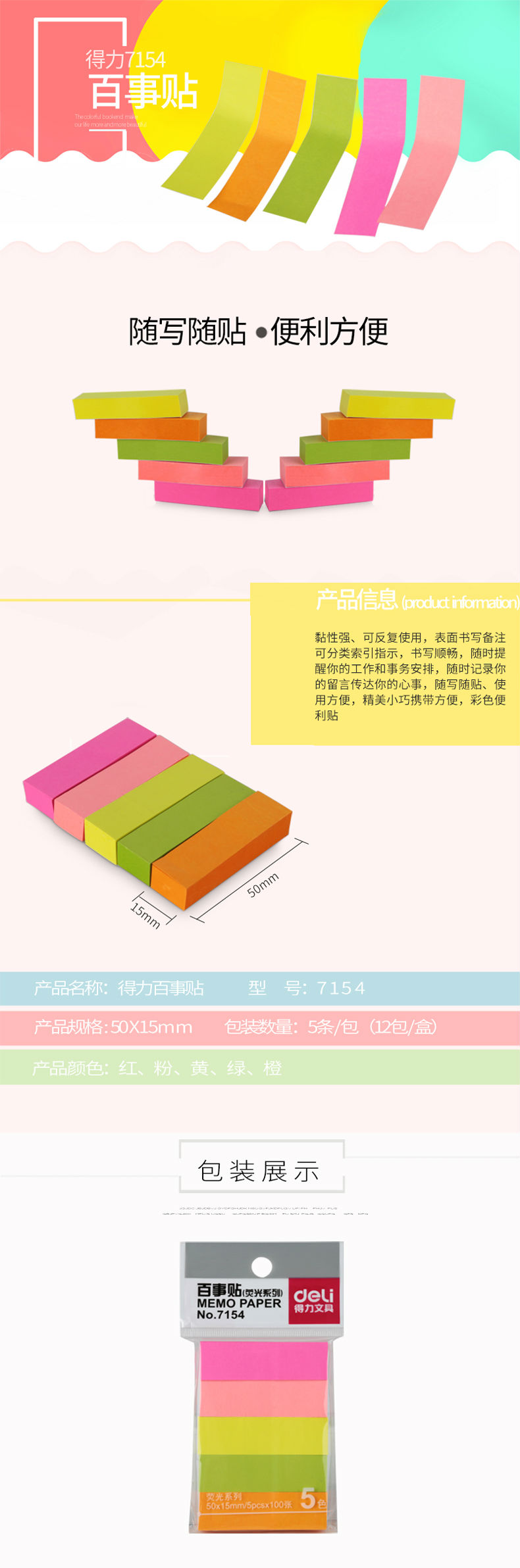 商品名称:得力7154百事贴(混)76*19mm