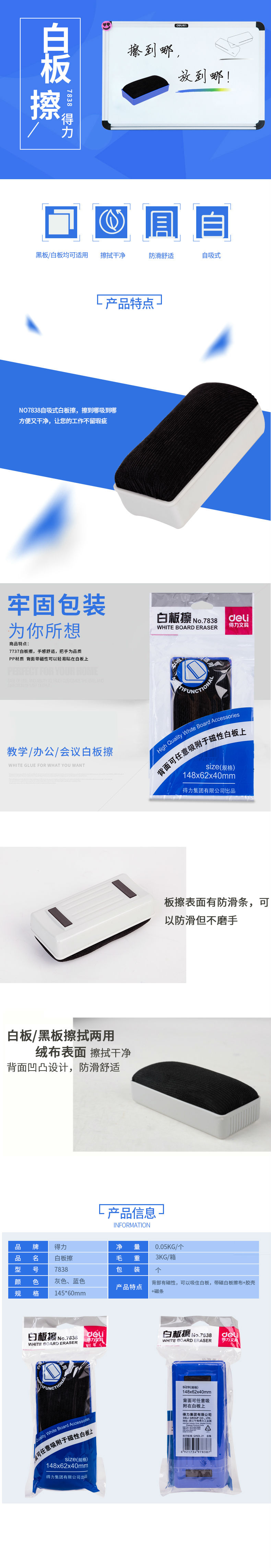 商品名称:得力7838白板擦148*65*40(混)(只)