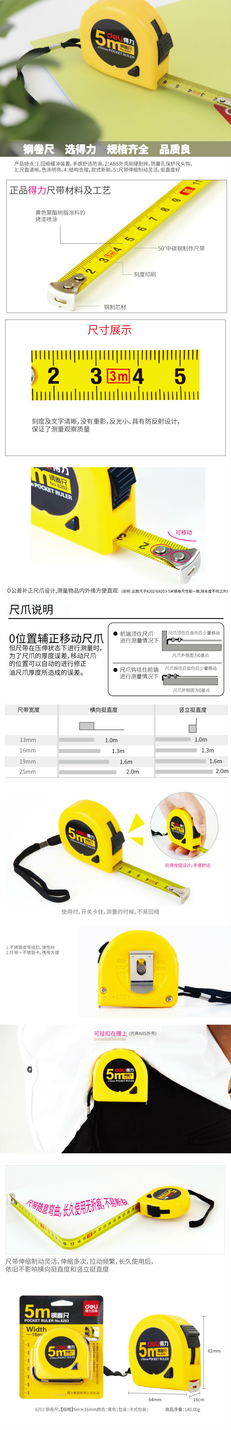商品名称:得力8203钢卷尺(黄)(把)
