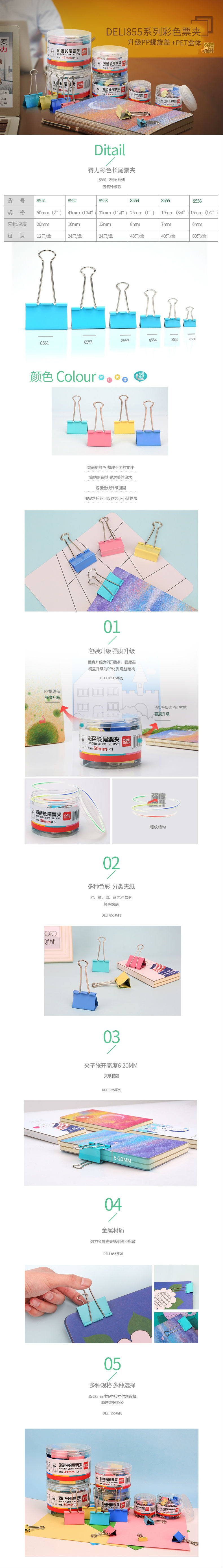 商品名称:得力8553-3#彩色长尾票夹32mm筒装(混)(24只/筒)