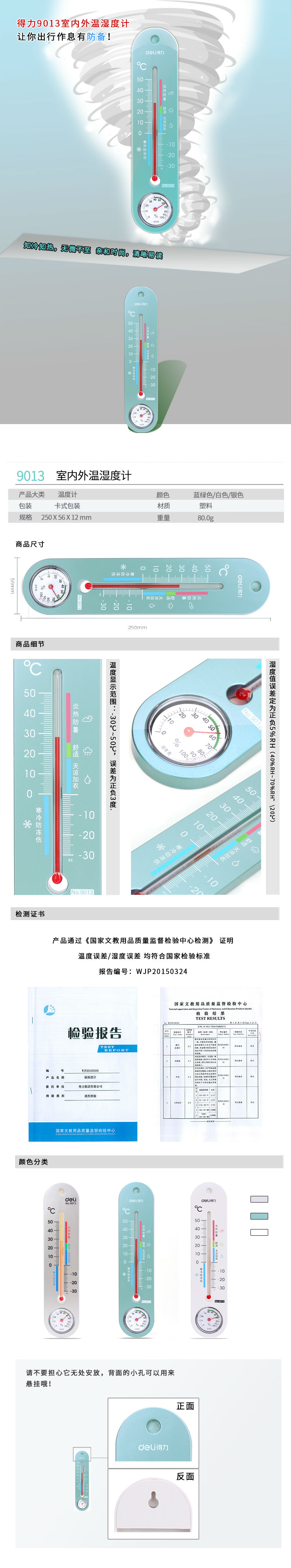 商品名称:得力9013室内温湿度计(银色)(只)