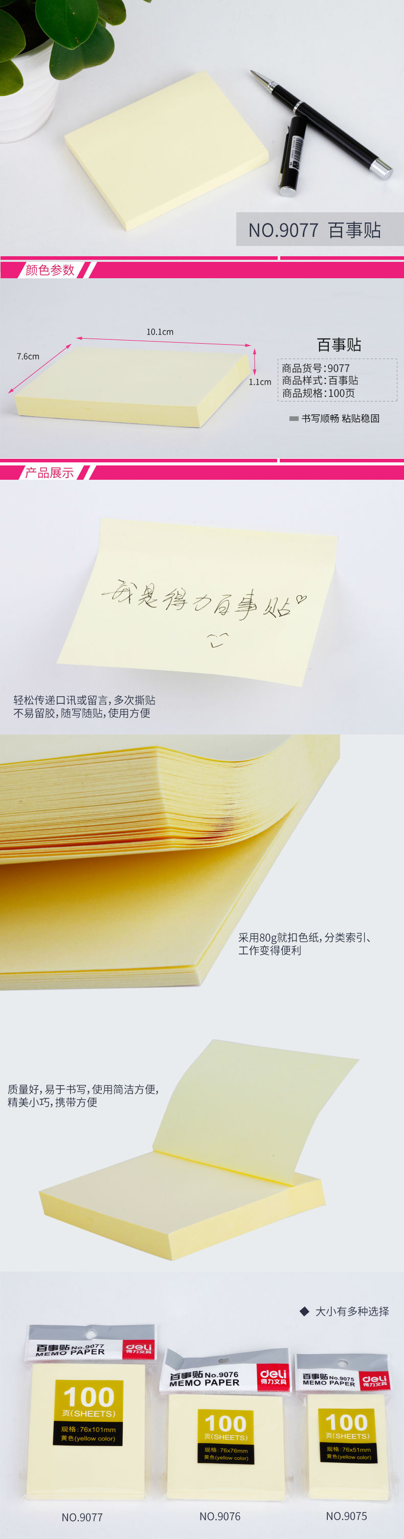 商品名称:得力9077百事贴(黄色)76*101mm(包)
