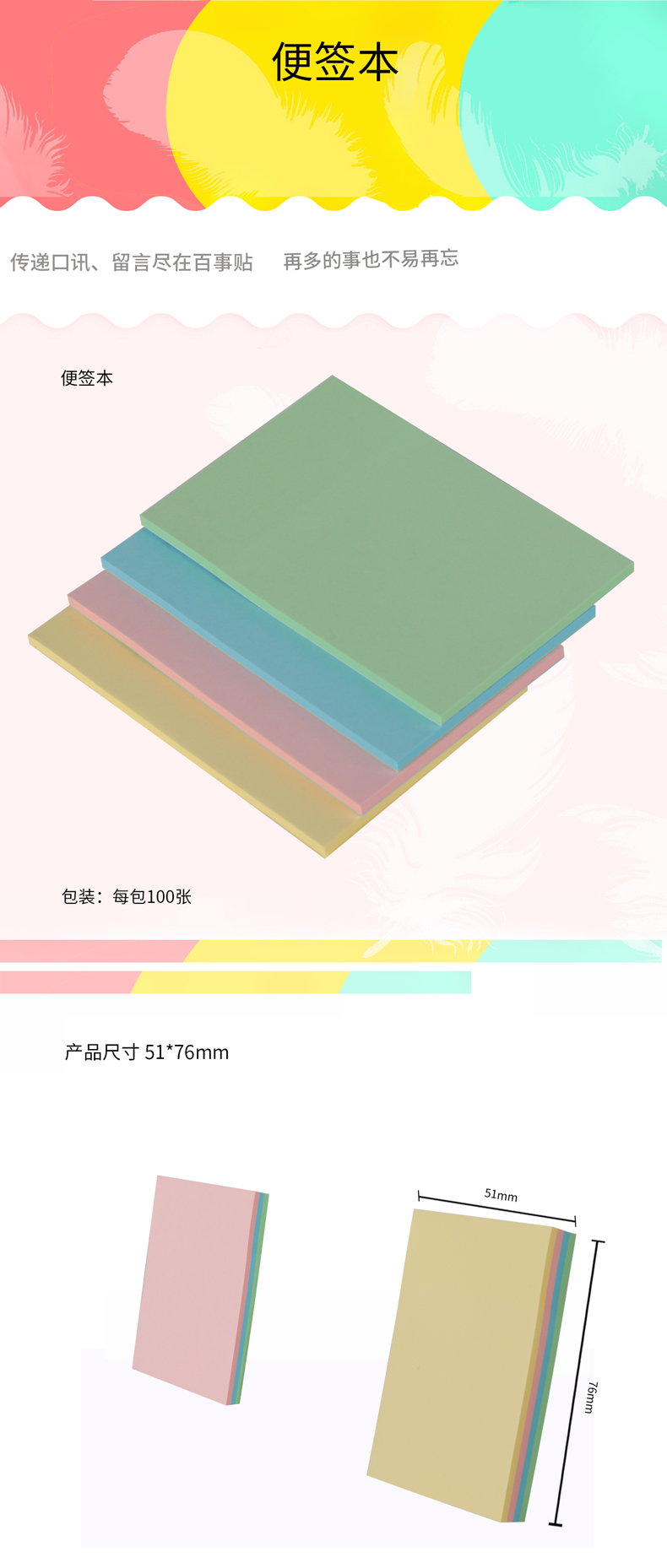 商品名称:得力9081百事贴(混)76*51mm(包)