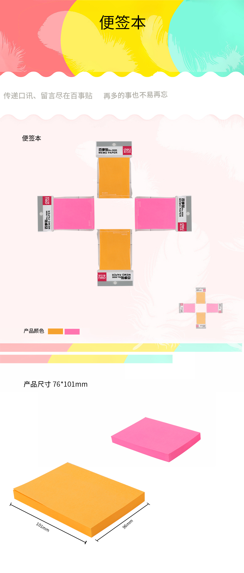 商品名称:得力9086便签纸(混)76*101mm(包)