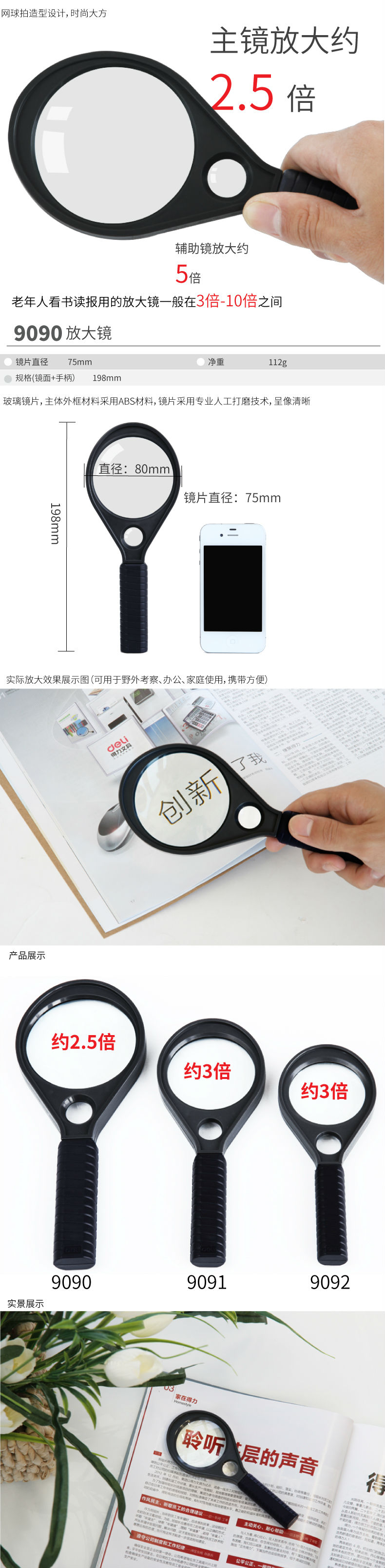 商品名称:得力9090放大镜(黑)(只)
