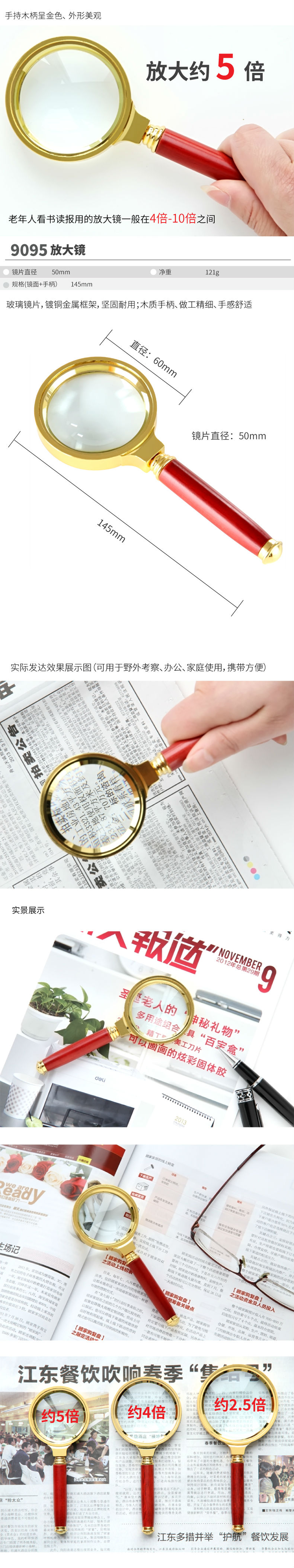 商品名称:得力9095放大镜(金)(只)