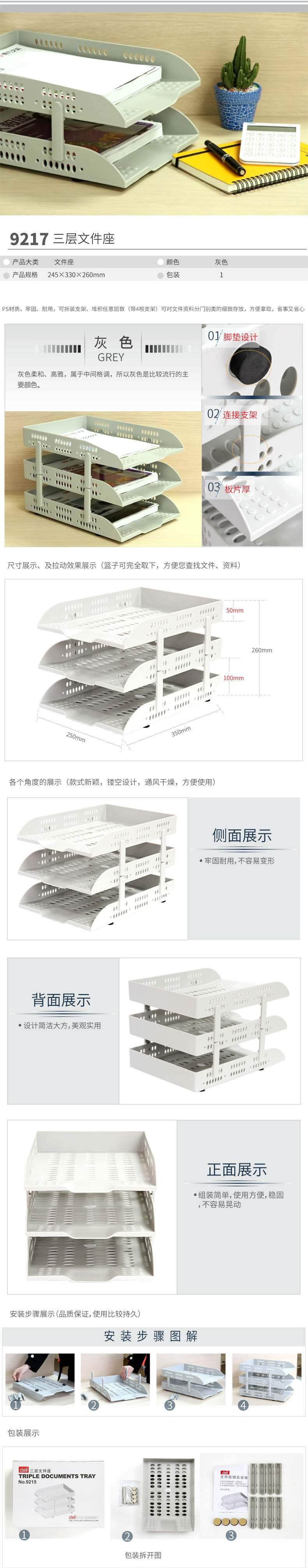 商品名称:得力9217三层文件座(黑)(只)