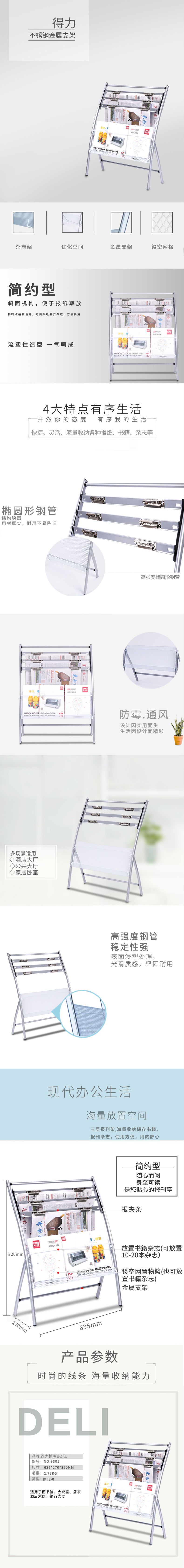 商品名称:得力9301报刊架简约型(灰)(只)